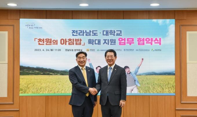 Çù¾àÀ» ÅëÇØ Àü¶ó³²µµ´Â Àü³²½Ò ¼ÒºñÃËÁø°ú ¡®Ãµ¿øÀÇ ¾ÆÄ§¹ä¡¯ »ç¾÷ÀÇ ¾ÈÁ¤ÀûÀÎ ÃßÁøÀ» À§ÇÑ ¿¹»êÀ» Áö¿øÇϸç, ¼øÃµ´ëÇб³´Â ÇлýµéÀÌ Àú·ÅÇÑ ºñ¿ë¿¡ °£ÆíÇÏ°Ô ¾ÆÄ§ ½Ä»ç¸¦ ÇÒ ¼ö ÀÖµµ·Ï »ç¾÷À» ¿î¿µÇϰí Àü³²½ÒÀ» »ç¿ëÇÑ ¾çÁúÀÇ ¸Þ´º¸¦ Á¦°øÇÒ °ÍÀ» ¾à¼ÓÇß´Ù.