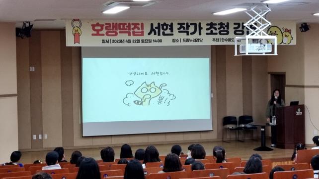 ÃÊû °¿¬Àº ÇѼöÇ®µµ¼°ü µå¸²´©¸® °´ç¿¡¼ ÁøÇàµÇ¾î, ¼Çö ÀÛ°¡°¡ ±×¸²Ã¥µéÀ» ¼Ò°³ÇÏ°í ¡¸È£·©¶±Áý¡¹À» ÇÔ²² ÀÐÀ¸¸ç ÁٰŸ®¿¡ ¼û°ÜÁø À̾߱â¿Í ÀÛ¾÷ Áß¿¡ °Þ¾ú´ø ¿¡ÇǼҵåµéÀ» µé·ÁÁÖ¾ú´Ù. ÀÌÈÄ ¾î¸°À̵éÀÇ ´Ù¾çÇÑ Áú¹®µé¿¡ ´äÇÏ°í »çÀÎȸ¸¦ ÅëÇØ Á÷Á¢ ¼ÒÅëÇÏ´Â ½Ã°£À» °¡Á³´Ù.
