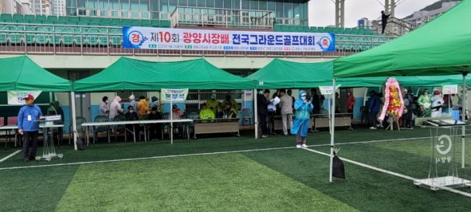 ±¤¾ç½ÃüÀ°È¸°¡ ÁÖÃÖÇÏ°í ±¤¾ç½Ã±×¶ó¿îµå°ñÇÁÇùȸ°¡ ÁÖ°üÇÏ´Â À̹ø ´ëȸ´Â Àü±¹ 22°³ Ŭ·´ 700¿© ¸íÀÇ ¼±¼ö¿Í ÀÓ¿øÀÌ Âü°¡ÇØ ±×µ¿¾È °¥°í´ÛÀº ½Ç·ÂÀ» À¯°¨¾øÀÌ »Ë³»´Â ÀÚ¸®°¡ µÆ´Ù. À̹ø ´ëȸ¿¡´Â ¿ì¸® ½Ã ¼Ò¼ÓÆÀ 8°³ ÆÀ, Àü³²±Ç 11°³ ÆÀ, °æ³²±Ç 3°³ ÆÀ µî 22°³ ÆÀÀÌ Âü°¡Çß°í, ÆÀ´ç 6ÀÎÀ¸·Î Æí¼ºÇØ °æ±â¸¦ ÁøÇàÇß´Ù.