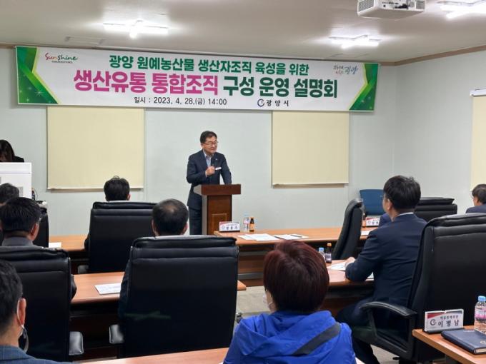 À̳¯ ¼³¸íȸ¿¡´Â »ý»êÀ¯Åë ÅëÇÕÁ¶Á÷¿¡ ´ëÇÑ ÀÌÇØ¸¦ µ½°íÀÚ ±èÇöÀÏ ÀÌ»çÀå(Áö¿ª³ó¾÷³×Æ®¿öÅ© Àü³²Çùµ¿Á¶ÇÕ)ÀÌ Ãâ°ÇØ °ÀÇÇß´Ù. À̸¦ ¹ÙÅÁÀ¸·Î ½Ã ¿¬ÇÕ»ç¾÷¿¡ Âü¿©ÇÏ´Â ±¤¾ç³óÇù, ±¤¾çµ¿ºÎ³óÇù, Áø»ó³óÇù, ´Ù¾Ð³óÇù, ±¤¾ç¿ø¿¹³óÇù°ú ÅëÇÕ¸¶ÄÉÆÃ Á¶Á÷ÀÎ ±¤¾ç½Ã ¿¬ÇÕ»ç¾÷´Ü, °ü°è °ø¹«¿øµéÀÌ ¿ì¸® ½Ã ¿©°Ç¿¡ ¸Â´Â ÅëÇÕÁ¶Á÷ ±¸¼º µî À°¼º ¹æ¾È¿¡ ´ëÇØ Ȱ¹ßÇÑ ³íÀǸ¦ ÁøÇàÇß´Ù.