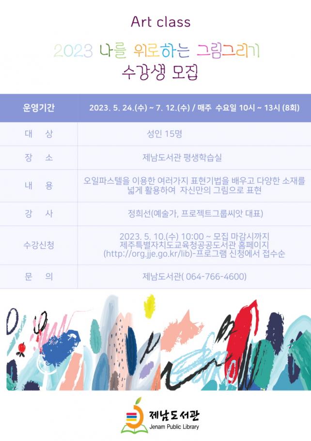 ¼ö°½ÅûÀº Á¦ÁÖÆ¯º°ÀÚÄ¡µµ±³À°Ã» °ø°øµµ¼°ü(https://org.jje.go.kr/lib) »ó´Ü ¸Þ´º [ÇÁ·Î±×·¥ ½Åû]¿¡¼ 5¿ù 10ÀÏ(¼ö) 10½ÃºÎÅÍ ½Åû °¡´ÉÇÏ´Ù.