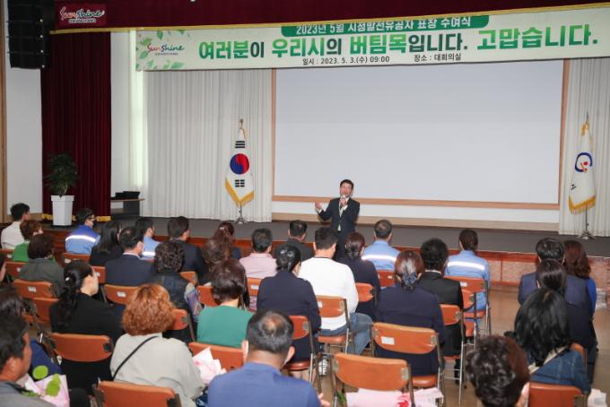 Á¤ ½ÃÀåÀº ½ÃÁ¤¹ßÀüÀ» À§ÇØ Àû±ØÀûÀ¸·Î ÇùÁ¶Çϰí Áö¿ª»çȸ¿¡ ºÀ»ç¸¦ ÅëÇØ ¼±ÇÑ ¿µÇâ·ÂÀ» º¸¿©ÁØ ´Üü 2°÷°ú ½Ã¹Î 30¸í¿¡°Ô ǥâÀ» ¼ö¿©ÇÏ¸ç °¨»çÀÇ ¶æÀ» ÀüÇß´Ù.