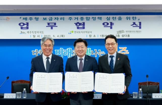 Á¦ÁÖµµ¿Í LH, Á¦ÁÖµµ°³¹ß°ø»ç´Â 4ÀÏ ¿ÀÀü 10½Ã Á¦ÁÖµµÃ» »ï´ÙȦ¿¡¼ ¾÷¹«Çù¾àÀ» ¸Î°í Á¦ÁÖÇü º¸±ÝÀÚ¸® ÁÖ°ÅÁ¾ÇÕÁ¤Ã¥ÀÌ ¼º°øÀûÀ¸·Î ÃßÁøµÇµµ·Ï À¯±âÀûÀÌ°í ´Ù°¢ÀûÀÎ »óÈ£ Çù·Â¿¡ Èû¾²±â·Î Çß´Ù.