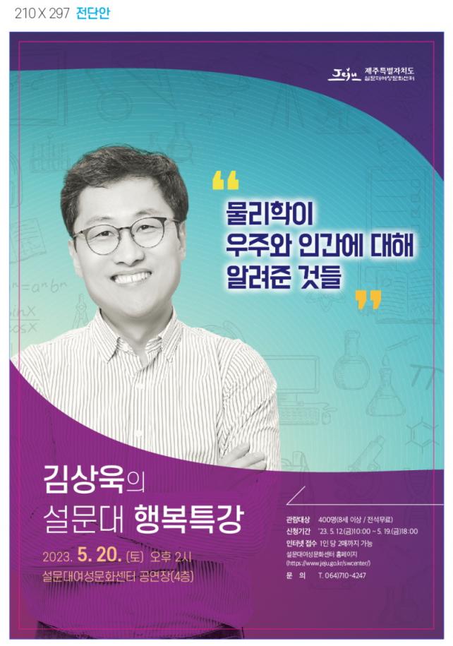 Ư°¿¡ ´ëÇÑ »çÀü ¿¹¾àÀº 12ÀÏ ¿ÀÀü 10½ÃºÎÅÍ 19ÀÏ ¿ÀÈÄ 6½Ã±îÁö ¼³¹®´ë¿©¼º¹®È¼¾ÅÍ ´©¸®Áý(https://www.jeju.go.kr/swcenter/)¿¡¼ ÇÏ¸é µÈ´Ù. 400¸í(8¼¼ ÀÌ»ó) ¼±Âø¼ø ¸ðÁýÀ̸ç ÀÔÀå·á´Â ¹«·á´Ù. ÀÚ¼¼ÇÑ »çÇ×Àº ¼³¹®´ë¿©¼º¹®È¼¾ÅÍ (064-710-4247)·Î ÇÏ¸é µÈ´Ù.