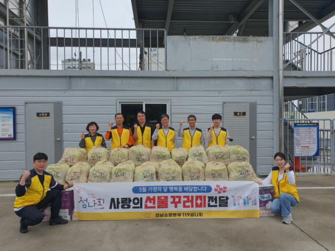 119¼¶³ªÈ¸¿¡¼´Â 5¿ù °¡Á¤ÀÇ ´ÞÀ» ¸Â¾Æ Ȧ¸ö ¾î¸£½Å µî¿¡°Ô Á¶±ÝÀ̳ª¸¶ ÈûÀÌ µÇ¾î µå¸®±â À§ÇØ ÀÚü Á¦ÀÛÇÑ ²Ù·¯¹Ì¿¡ ½Ò, ÈÞÁö, ºñ´© µî »ýÇÊǰÀ» ´ã¾Æ Àü´ÞÇß´Ù. À̳¯ ºÀ»çȰµ¿¿¡´Â ¼¶³ªÈ¸ ȸ¿ø 19¸íÀÌ Âü¿©ÇßÀ¸¸ç, 119¼¶³ªÈ¸´Â Àü³²¼Ò¹æ Á÷À嵿ȣȸ·Î ȸ¿ø 92¸íÀÌ È°µ¿ ÁßÀÌ´Ù.