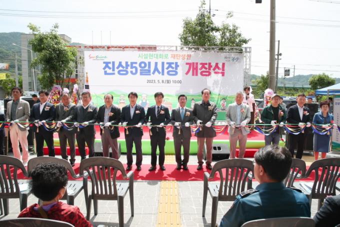 Áø»ó5ÀϽÃÀåÀº 2009³â ÁýÁßÈ£¿ì·Î ÀÎÇÑ Àå¿Á ħ¼ö·Î ½ÃÀå ±â´ÉÀÌ »ó½ÇµÆÀ¸³ª, Áø»ó¸é¹ÎÀÇ ½ÃÀå º¹¿ø °ÇÀÇ¿Í Áö¿ª »ó±Ç Ȱ¼ºÈ Çʿ伺À» °í·ÁÇØ 2021³â ½Ã¼³Çö´ëÈ»ç¾÷ Áذø, ¿ÃÇØ 3¿ù ³ëÁ¡ ±¸¿ª ¾ÆÄÉÀÌµå °ø»ç¸¦ ¿Ï·áÇØ Á¡Æ÷ 8°³¼Ò, ³ëÁ¡ 42°³¼ÒÀÇ ÆÇ¸Å½Ã¼³°ú ÈÀå½Ç 1°³¼Ò, ÁÖÂ÷Àå(14¸é)ÀÇ ºÎ´ë½Ã¼³·Î ±¸¼ºµÆ´Ù.