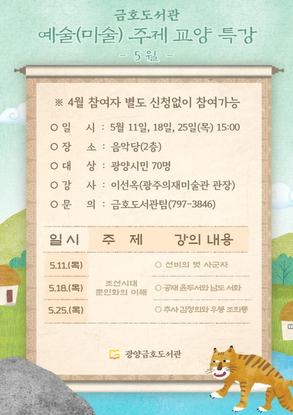 À̹ø 5¿ù ¿¹¼ú(¹Ì¼ú) ÁÖÁ¦ ±³¾ç Ư°¿¡ ´ëÇØ ±Ã±ÝÇÑ »çÇ×Àº ±¤¾ç½Ã¸³µµ¼°ü ȨÆäÀÌÁö¸¦ Âü°íÇϰųª ±ÝÈ£µµ¼°ü(¢Ï 797-3846)À¸·Î ¹®ÀÇÇϸé ÀÚ¼¼È÷ ¾È³»¹ÞÀ» ¼ö ÀÖ´Ù.