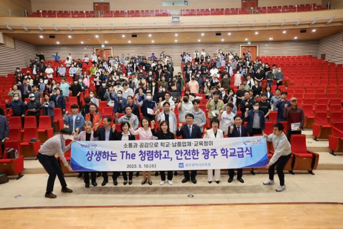 ÀÌ¿Í ÇÔ²² Çб³±Þ½Ä ÇöÀåÀÇ ÁÖüÀÌÀÚ ÆÄÆ®³ÊÀÎ ³³Ç°¾÷ü¿Í Çб³, ±³À°Ã» °ü°èÀÚ°¡ ÇÔ²² ¸ð¿© ¼·ÎÀÇ ¾î·Á¿òÀ» ÀÌÇØÇÏ°í °ø°¨ÇÏ´Â ½Ã°£À» °¡Á³´Ù. Âü¼®ÀÚµéÀº û·ÅÇÏ°í ¾ÈÀüÇÑ ½ÄÀç·á °ø±Þ¹æ¾È µîÀ» ÇùÀÇÇϰí ÇâÈÄ °ÇÀüÇÑ Çб³±Þ½Ä µ¿ÇàÀ» À§ÇÑ ÀÇÁö¸¦ ÇÔ²² ´ÙÁ³´Ù.