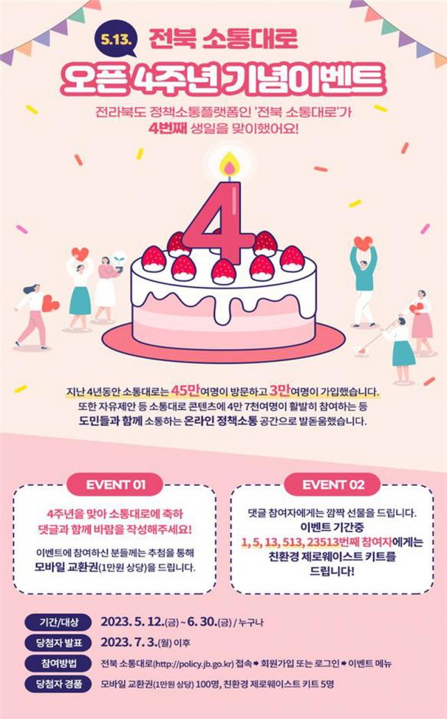 ¼ÒÅë´ë·Î´Â Áö³ 2019³â 5¿ù 13ÀÏ¿¡ ¹®À» ¿¬ ÀÌÈÄ 4³â°£ ¾à 45¸¸¸íÀÌ ¹æ¹®Çϰí, 3¸¸¿© ¸íÀÌ °¡ÀÔÇß´Ù. ºÐ¾ßº°·Î´Â ÀÚÀ¯Á¦¾ÈÀº 2,011°Ç, °ø¸ðÁ¦¾È 2,296°Ç, ¼³¹®¡¤ÅõÇ¥ 9,651°ÇÀÌ Á¢¼öµÇ´Â µî ¿Â¶óÀÎ Á¤Ã¥ ¼ÒÅë°ø°£À¸·Î ÀÚ¸®¸Å±èÇß´Ù. ±×µ¿¾È ÀüºÏµµ´Â µµ¹ÎÂü¿© Ȱ¼ºÈ¸¦ À§ÇØ ÀýÂ÷°³¼±¡¤½Å±Ô ÄÜÅÙÃ÷ µµÀÔÀ» Àû±Ø ÃßÁøÇϰí, Ç÷§Æû È«º¸¿Í Âü¿© À¯µµ¸¦ À§ÇØ ³ë·ÂÀ» ±â¿ï¿© ¿Ô´Ù. ƯÈ÷, ¹Î¼± 8±â¿¡ µé¾î¼ ÀüºÏµµ´Â µµ¹ÎÀÇ ¸ñ¼Ò¸®¸¦ Á¤Ã¥¿¡ ´ã±â À§ÇØ ¡®µµÁö»ç °ü»ç ÆóÁö¿¡ µû¸¥ Ȱ¿ë¹æ¾È °ø¸ð¡¯, ¡®Áö¿ª¹®Á¦ÇذáÇ÷§Æû ÀÇÁ¦ °ø¸ð¡®, ÀüºÏƯº°ÀÚÄ¡µµ Ãâ¹ü(¡¯24.1.18.)À» ¾Ë¸®´Â È«º¸ µîÀÌ ÀÌ·ïÁ³´Ù.