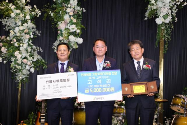´õºÒ¾î ÀüºÏµµ¹Îȸ ÃÊ´ë ȸÀåÀÎ °í¼®°ï ȸÀåÀÌ Àü¶óºÏµµ¿¡ ±âºÎ ÃÖ°í Çѵµ¾×ÀÎ 500¸¸ ¿øÀ» ±âºÎÇÑ °Í¿¡ ´ëÇÑ °¨»çÀÇ Àǹ̸¦ ´ã¾Æ °í¼®°ï ȸÀå¿¡°Ô´Â ÀüºÏ»ç¶ûµµ¹ÎÁõÀ», ¿ëÀÎÆ¯·Ê½Ã ÀüºÏµµ¹Îȸ¿¡´Â °¨»çÆÐ¸¦ ¼ö¿©Çß´Ù.