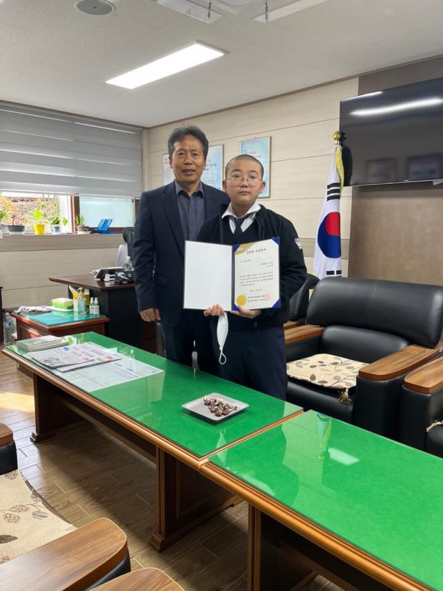 [½Ã»çÁ¾ÇսŹ® = °í¼º¹Î ±âÀÚ] ÇѸ²ÁßÇб³(±³Àå ±èÇüÈñ)´Â 5¿ù 11ÀÏ(¸ñ) ±³Àå½Ç¿¡¼ Á¦ÁÖÃà»ê³óÇù ÇÑ¿ìºÎ³àȸ(ȸÀå ±è¿ÁÈñ)°¡ ±âŹÇÑ Á¦ÁÖ Ã»¼Ò³â Èñ¸Á ÀåÇбÝÀ» 1Çгâ(1¸í) Çлý¿¡°Ô Àü´ÞÇß´Ù.