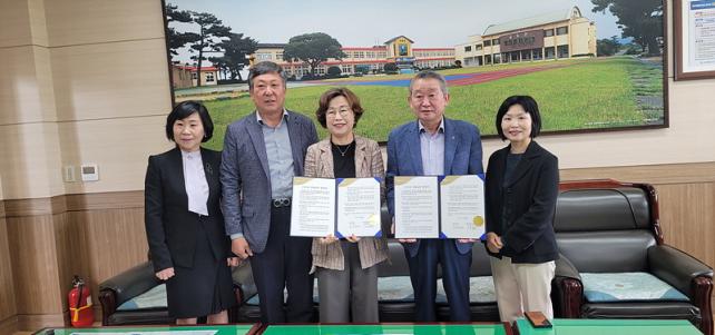 [½Ã»çÁ¾ÇսŹ® = °í¼º¹Î ±âÀÚ] ¼ö¿øÃʵîÇб³(±³Àå ¼Û¿¬¿Á)´Â 5¿ù 12ÀÏ(±Ý), ±³Àå½Ç¿¡¼ ÇѸ²³ó¾÷Çùµ¿Á¶ÇÕ Á¶ÇÕÀå Æ÷ÇÔ 4¸í°ú ¼ö¿øÃʵîÇб³ ±³Àå Æ÷ÇÔ 3¸íÀÌ Âü¼®ÇÑ °¡¿îµ¥ ±ÝÀ¶±³À° Áö¿ø Çù¾à½ÄÀ» °¡Á³´Ù.