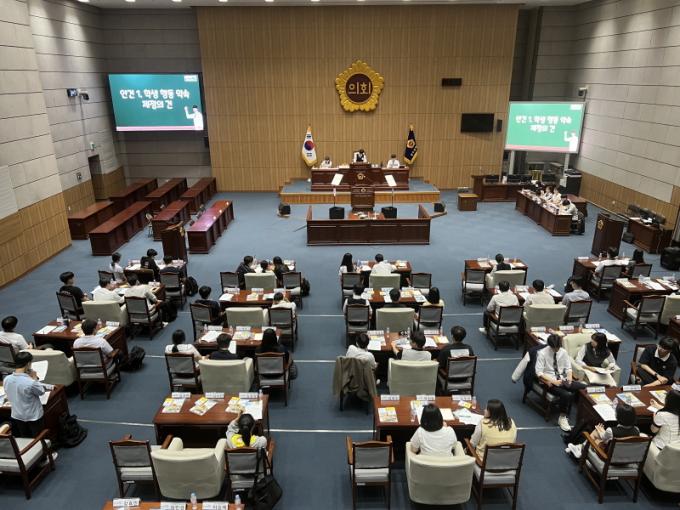½ÃÀÇȸ¸¦ ´ëÇ¥ÇØ ȯ¿µ Àλ縦 ÇÑ °¼öÈÆ ÀÇȸ¿î¿µÀ§¿øÀåÀº ¡°°íµîÀÇȸ ÇлýÀÇ¿øµéÀÇ ÀÚÄ¡¿ª·®ÀÌ ¸Å¿ì ¶Ù¾î³ª ±ô¦ ³î¶ú´Ù¡±¸ç ¡°ÇлýµéÀÇ ÀÇȸ¹ÎÁÖÁÖÀÇ Ã¼ÇèÀ» À§ÇØ ÀÇȸ °ø°£À» Àû±Ø °³¹æÇϰí, ¾ÕÀ¸·Îµµ °íµîÀÇȸ¿Í Çù·ÂÇØ Çлý °ü·Ã Á¤Ã¥À» ¹Ý¿µÇÏ´Â µ¥ ¾ÕÀå¼°Ú´Ù¡±°í ¼Ò°¨À» ¹àÇû´Ù.