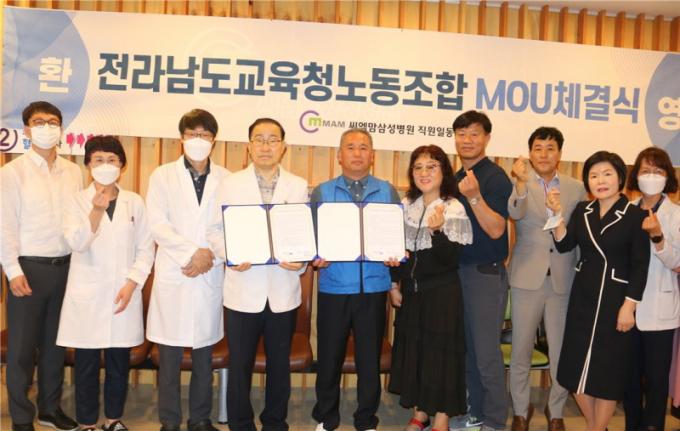 ÇÑÆí, Á¶Á¾¿ À§¿øÀåÀº¡°¾¾¿¥¸¾»ï¼ºº´¿ø°ú °Ç°°ËÁø MOU ü°áÀº °Ç°ÇÑ »î, ÇູÇÑ »îÀÇ Çູ±ÇÀ» Àü³²±³À°³ëÁ¶ Á¶ÇÕ¿ø ¹× °¡Á·ºÐµé¿¡°Ô Á¦°øÇÏ¿´´Ù¡±°í ÀüÇÏ¿´À¸¸ç, ¾ÕÀ¸·Îµµ Àü³²±³À°³ëÁ¶´Â Á¶ÇÕÀÇ º¹ÁöÇâ»óÀ» À§ÇØ ÃÖ¼±À» ´ÙÇϰڴ١±°í ¸»Çß´Ù.