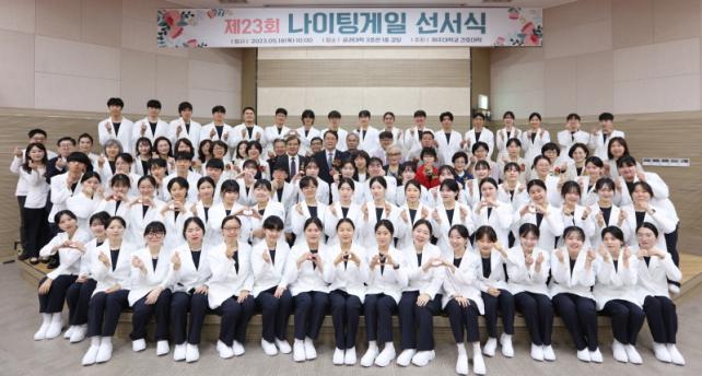 ³ªÀÌÆÃ°ÔÀÏ ¼±¼½ÄÀº ÀÓ»ó½Ç½ÀÀ» ¾ÕµÐ °£È£´ëÇÐ 3Çгâ ÇлýµéÀÌ °úÇÐÀû, ÀüÀÎÀû °£È£¸¦ ÅëÇØ °£È£¸¦ Àü¹®Á÷À¸·Î ¹ßÀü½ÃÄ×´ø ³ªÀÌÆÃ°ÔÀÏÀÇ ¼þ°íÇÑ Á¤½ÅÀ» °è½ÂÇϰí, ÀηùÀÇ °Ç°°ú ¾È³çÀ» À§ÇØ Ã¥ÀÓÀ» ´ÙÇÒ °ÍÀ» ´ÙÁüÇϱâ À§ÇÑ ¶æ±íÀº Çà»çÀÌ´Ù.