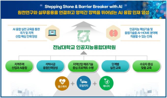 Àü³²´ë »ç¾÷´ÜÀº ±¤ÁÖ±¤¿ª½ÃÀÇ ÁÖ·Â »ê¾÷ÀÎ ÇコÄɾ¸ðºô¸®Æ¼¡¤¿¡³ÊÁö ºÐ¾ß¿¡¼ ÀΰøÁö´É(AI) ¿øÃµ±â¼ú°ú »ê¾÷°è ½Ç¹« ÀÀ¿ëÀ» ¿¬°áÇϴ ¡°Ë´Ù¸® ¿ªÇÒÀ» ¼±µµÇϰí, ºÐ¾ß °£ À庮À» ¶Ù¾î³Ñ´Â Áö¿ªÇõ½Å AI-HOME À¶ÇÕÀÎÀç¾ç¼ºÀ» ¸ñÇ¥·Î ÇÑ´Ù.