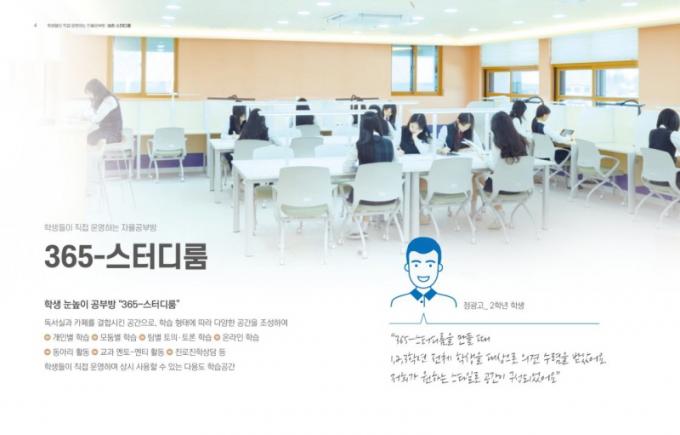 ±¤Áֽñ³À°Ã»Àº ¡®365-½ºÅ͵ð·ë¡¯ Á¶¼º °ü·Ã ¿î¿µ ÀڷḦ °³¹ß‧¹èÆ÷ÇØ ÇöÀå¿¡ ÀÖ´Â ±³¿ø ¹× Çлýµé¿¡°Ô ¾È³»ÇÏ´Â µ¥ Àû±Ø Ȱ¿ëÇÒ °èȹÀÌ´Ù. ¿î¿µÀÚ·á´Â À̹ø ´Þ ³» Àüü Áß¡¤°íµîÇб³·Î ¹èºÎµÈ´Ù. ¡®365-½ºÅ͵ð·ë¡¯À» ÀÌ¿ëÇÏ´Â ÇлýµéÀÇ ¹ÝÀÀµµ ¶ß°Ì´Ù. Á¤±¤°í ÇлýÀº ¡°365-½ºÅ͵ð·ëÀ» ¸¸µé ¶§ ¸ðµç ÇлýÀ» ´ë»óÀ¸·Î ÀÇ°ß ¼ö·ÅÀ» ¹Þ¾Ò¾î¿ä. ÀúÈñ°¡ ¿øÇÏ´Â ½ºÅ¸ÀÏ·Î °ø°£ÀÌ ±¸¼ºµÅ ³Ê¹« ÁÁ¾Æ¿ä¡±¶ó°í ÀüÇß´Ù.