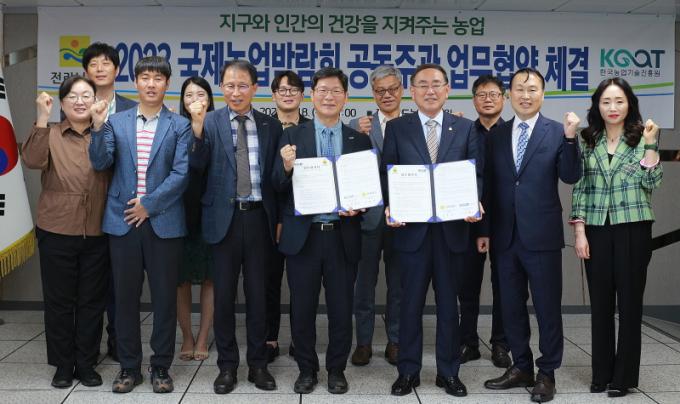 (Àç)Àü³²±¹Á¦³ó¾÷¹Ú¶÷ȸ°¡ Çѱ¹³ó¾÷±â¼úÁøÈï¿ø°ú ¼ÕÀ» ¸ÂÀâÀº °ÍÀº 2023 ±¹Á¦³ó¾÷¹Ú¶÷ȸ°¡ óÀ½ÀÌ´Ù. ¾ÕÀ¸·Î »óÈ£ À¯±âÀû ¾÷¹« Çù·Â ü°è¸¦ ±¸ÃàÇØ Àü³²Áö¿ª ³ó»ê¾÷ ¹ßÀü ¹× ¿øÈ°ÇÑ Çù·Â»ç¾÷À» ÃßÁøÇÒ ¿¹Á¤ÀÌ´Ù.