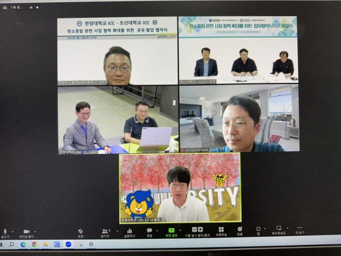 È»óȸÀÇ ÁÜ(Zoom)À¸·Î ¿¸° ¾÷¹«Çù¾à½Ä¿¡´Â Á¶¼±´ë LINC3.0»ç¾÷´Ü Àúź¼Ò ³ì»ö ºÎǰ¼ÒÀç ICC ±è¼±Áß ¼¾ÅÍÀå, ÇѾç´ë LINC3.0»ç¾÷´Ü ģȯ°æ¹ÝµµÃ¼°øÁ¤ ICC ¾ÈÁøÈ£ ¼¾ÅÍÀåÀ» ºñ·ÔÇØ ¾ç ´ëÇÐ LINC3.0»ç¾÷´Ü ±¸¼º¿ø µîÀÌ Âü¼®Çß´Ù. À̹ø Çù¾àÀº ź¼ÒÁ߸³ ºÐ¾ß ¹ßÀü°ú Àη¾缺, °¢ Çб³°£ Æ¯ÈºÐ¾ß ±â¼úµéÀ» ±³·ùÇÒ ¼ö ÀÖ´Â º»°ÝÀûÀÎ ÀåÀ» ¸¶·ÃÇϱâ À§Çؼ ±âȹµÆ´Ù.