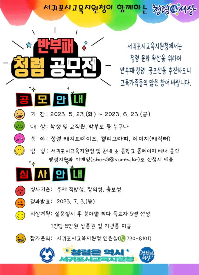 °ø¸ðÀü¿¡ ´ëÇÑ ÀÚ¼¼ÇÑ »çÇ×Àº ¼±ÍÆ÷½Ã±³À°Áö¿øÃ» ȨÆäÀÌÁö (https://www.jje.go.kr) ¹× °ü³» Çб³ ȨÆäÀÌÁö ¹è³Ê¸¦ ÅëÇØ¼ È®ÀÎÇÒ ¼ö ÀÖÀ¸¸ç, Âü°¡½Åû¼´Â ÀüÀÚ¿ìÆí (sbon3@korea.kr)À¸·Î Á¦ÃâÇÏ¸é µÈ´Ù.