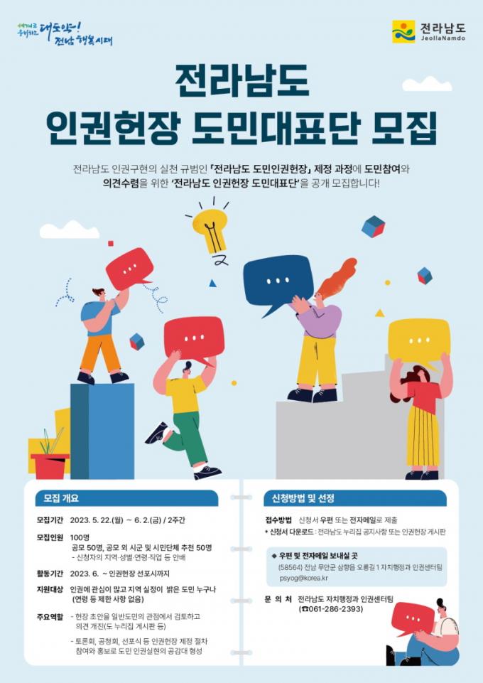 ÀαÇÇåÀå Á¦Á¤¿¡ °ü½É ÀÖ´Â µµ¹ÎÀÌ¸é ´©±¸³ª ½Åû¼¸¦ ÀÛ¼ºÇØ ¿ìÆíÀ̳ª À̸ÞÀÏ·Î 6¿ù 2ÀϱîÁö Àü³²µµ¿¡ Á¦ÃâÇÏ¸é µÈ´Ù. ÀÚ¼¼ÇÑ ³»¿ëÀº µµ ´ëÇ¥ ´©¸®Áý(https://www.jeonnam.go.kr/) °ø°í¶õ¿¡¼ È®ÀÎÇÒ ¼ö ÀÖ´Ù.