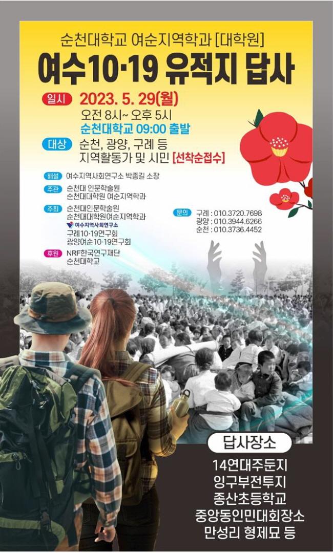 ¿©¼öÁö¿ª»çȸ¿¬±¸¼Ò, ±¸·Ê 10.19 ¿¬±¸È¸, ±¤¾ç ¿©¼ø 10.19 ¿¬±¸È¸µµ °øµ¿ÁÖÃÖ·Î Âü¿©ÇÑ´Ù. ¿©¼øÁö¿ªÇÐ Àü°ø(ÁÖÀÓ °¼ºÈ£)ÀÌ Àü³²µ¿ºÎÁö¿ª ¿©¼ø»ç°Ç °ü·Ã ¿¬±¸È¸µéÀÌ ¿¬ÇÕÇÏ¿© ÁøÇàÇÑ´Ù´Â Á¡¿¡¼ ÀÇÀǰ¡ Å©´Ù.