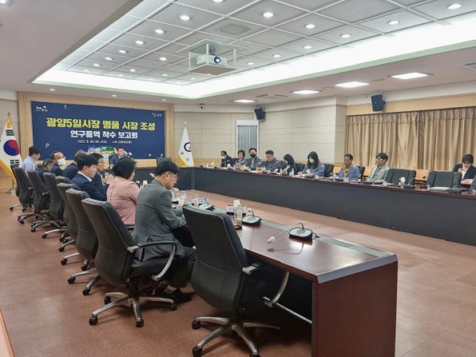 ±¤¾ç½ÃÀÇȸ, °ü°èºÎ¼Àå, »óÀÎȸ, Àü¹®°¡ µî 20¸íÀÌ Âü¼®ÇÑ À̹ø Âø¼öº¸°íȸ´Â ±¤¾ç5ÀϽÃÀåÀ» Àü±¹Àû ¸í¼ºÀÇ ¸íǰ½ÃÀåÀ¸·Î Á¶¼ºÇϱâ À§ÇÑ ¹Ø±×¸²À» ±×¸®´Â ÀÚ¸®·Î, ¿ë¿ª»ç(¢ßÁö¿ªÃ¢ÀǼ¾ÅÍ, ´ëÇ¥ À̰æÈ¯)ÀÇ °ú¾÷ ÃßÁø °èȹ ¹× ±âº» ¹æÇâ º¸°í ÈÄ ÀÇ°ß ±³È¯ ¼øÀ¸·Î ÁøÇàµÆ´Ù.