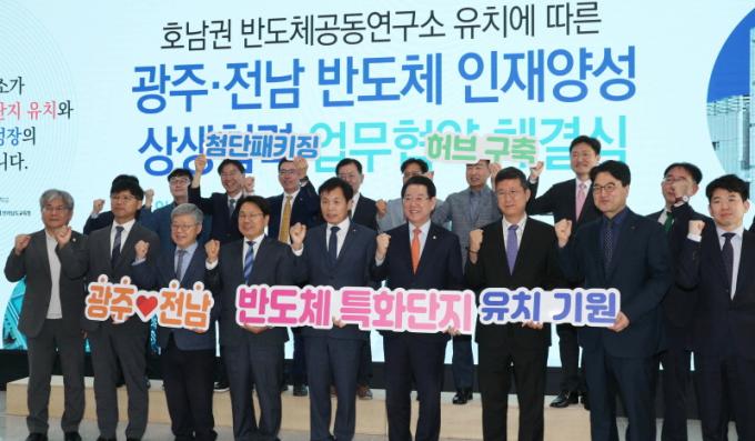 °±âÁ¤ ½ÃÀåÀº ¡°È£³²±Ç ¹ÝµµÃ¼°øµ¿¿¬±¸¼Ò À¯Ä¡´Â ±¤ÁÖ¡¤Àü³² ½Ãµµ¹ÎÀÇ ²ÞÀÎ ¹ÝµµÃ¼Æ¯È´ÜÁö À¯Ä¡ÀÇ ¼ÒÁßÇÑ ¸¶Áß¹°ÀÌ µÆÀ» »Ó ¾Æ´Ï¶ó ÀΰøÁö´É(AI)°ú ÷´Ü»ê¾÷ ÀÎÀç¾ç¼º »ç´Ù¸®ÀÇ ÇÑÁ¶°¢À» ¸ÂÃß°Ô µÆ´Ù¡±¸ç ¡°À̹ø Çù¾àÀº ¸¶Áö¸·±îÁö ¹ÝµµÃ¼Æ¯È´ÜÁö À¯Ä¡¸¦ À§ÇØ ³ë·ÂÇÏÀÚ´Â ´ÙÁüÀÇ ÀÚ¸®¡±¶ó°í ¹àÇû´Ù.