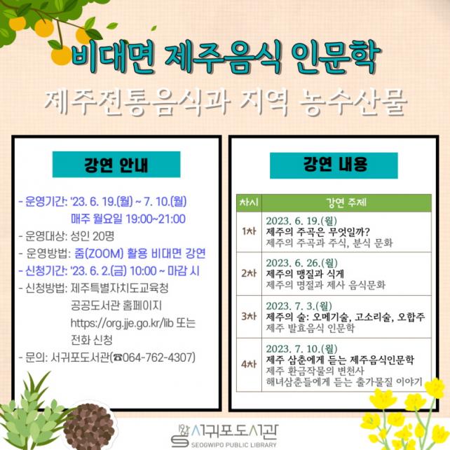 º» °Á´ ¼ºÀÎ 20¸íÀ» ´ë»óÀ¸·Î 6¿ù 19ÀÏ(¿ù)ºÎÅÍ 7¿ù 10ÀÏ(¿ù)±îÁö ÃÑ 4ȸ¿¡ °ÉÃÄ, ¸ÅÁÖ ¿ù¿äÀÏ ¿ÀÈÄ 7½ÃºÎÅÍ 9½Ã±îÁö ºñ´ë¸é °Á·Π¿î¿µµÈ´Ù. Âü°¡ ½ÅûÀº 6¿ù 2ÀÏ(±Ý) ¿ÀÀü 10½ÃºÎÅÍ ÀüÈ ¶Ç´Â Á¦ÁÖÆ¯º°ÀÚÄ¡µµ±³À°Ã» °ø°øµµ¼°ü ȨÆäÀÌÁö(https://org.jje.go.kr/lib)¸¦ ÅëÇØ ½ÅûÇÒ ¼ö ÀÖ´Ù.