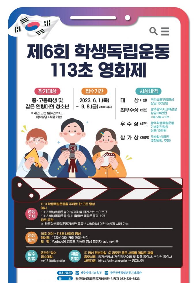 °ø¸ð °á°ú ¹ßÇ¥´Â ¿À´Â 10¿ù12ÀÏ¿¡ ÀÖÀ» ¿¹Á¤ÀÌ´Ù. ´ë»ó 1ÆíÀº ±¹°¡º¸ÈƺÎÀå°ü»ó ¹× »ó±Ý 100¸¸¿øÀÌ ¼ö¿©µÈ´Ù. ÃÖ¿ì¼ö»ó 2Æí°ú ¿ì¼ö»ó 4ÆíÀº °¢°¢ ±¤ÁÖ±¤¿ª½Ã±³À°°¨»ó ¹× »ó±Ý 50¸¸¿ø, ±¤ÁÖÇлýµ¶¸³¿îµ¿±â³äȸ°üÀå»ó ¹× »ó±Ý 10¸¸¿øÀÌ ÁÖ¾îÁø´Ù. ¶Ç Âü°¡ÇÑ Çлýµé Áß 20¸íÀ» ÃßÃ·ÇØ ¸ð¹ÙÀÏ ¹®È»óǰ±Çµµ ÁõÁ¤ÇÒ °èȹÀÌ´Ù