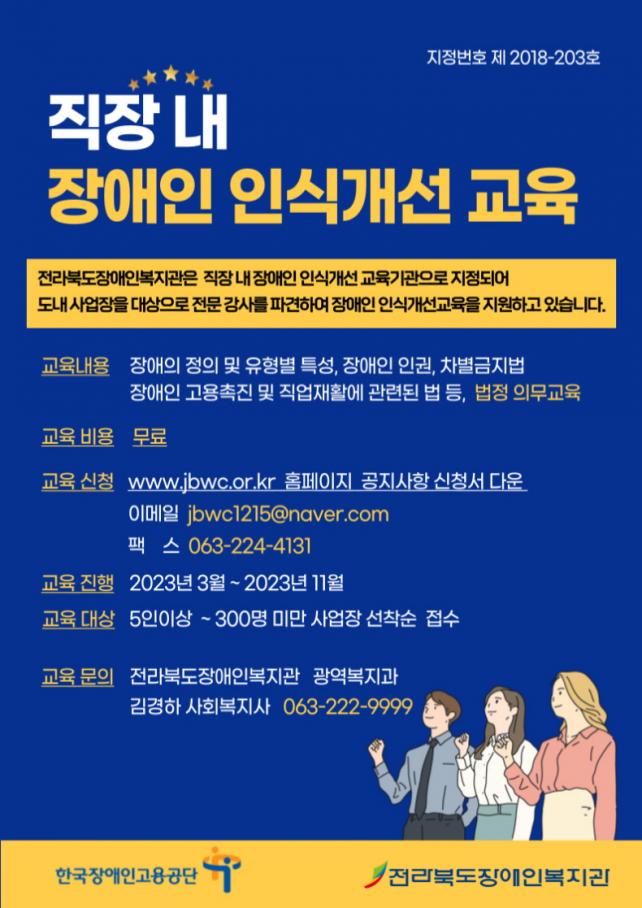 ÇÑÆí, ±³À° ½ÅûÀº Àü¶óºÏµµÀå¾ÖÀκ¹Áö°ü ȨÆäÀÌÁö(https://www.jbwc.or.kr/) ¹× ±¤¿ªº¹Áö°ú(063-901-5246)·Î ¹®ÀÇÇϸé ÀÚ¼¼ÇÑ ¾È³»°¡ °¡´ÉÇÏ´Ù.