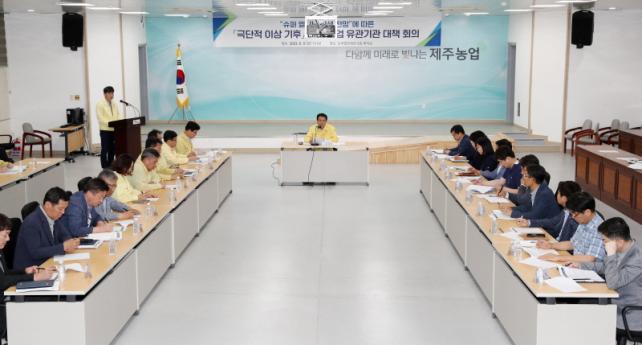 À̳¯ ´ëåȸÀÇ¿¡´Â ±èÈñÇö Á¤¹«ºÎÁö»ç ÁÖÀç·Î Á¦ÁÖµµ ³óÃà»ê½Äǰ±¹À» ºñ·ÔÇØ ÇàÁ¤½Ã, Á¦ÁÖ±â»óû, ³ó¾îÃ̰ø»ç, ¿Â³È´ëÀÀ³ó¾÷¿¬±¸¼Ò, °¨±Ö¿¬±¸¼Ò, ³óÇù Á¦ÁÖº»ºÎ µî µµ³» ³ó¾÷°ü·Ã À¯°ü±â°üÀÌ ¸ðµÎ Âü¿©ÇÑ °¡¿îµ¥, ±Ø´ÜÀû ÀÌ»ó ±âÈÄ¿¡ µû¸¥ ³ó¾÷ÀçÇØ ¹ß»ý »çÀü Á¡°Ë°ú ½Å¼ÓÇÑ º¹±¸ Áö¿øÃ¼°è ±¸Ãà, ³ó¾÷ÀçÇØ ´ëÀÀ‧´ëÃ¥ Áغñ»çÇ×À» °øÀ¯ÇÒ °èȹÀÌ´Ù.