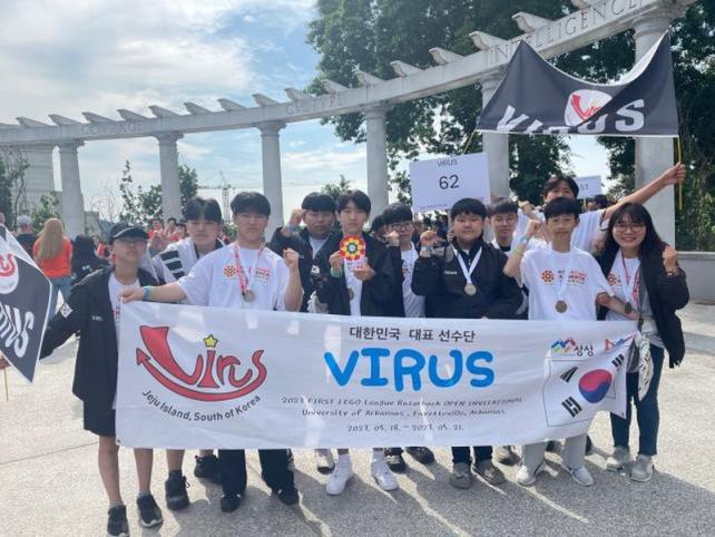 VIRUSÆÀÀº Áö³ 17~21ÀÏ ¹Ì±¹¿¡¼ ¿¸° 2023 First Lego League Razorback(¹Ì±¹ ¾ÆÄ¼Ò ´ëȸ) ¼¼°è´ëȸ¿¡ ÃâÀüÇØ¡®Robot Design Award¡¯¸¦ ¼ö»óÇß´Ù. ¡®Robot design¡¯Àº ·Îº¿ ¸ÞÄ¿´ÏÁò, ÇÁ·Î±×·¡¹ÖÀ¸·Î ·Îº¿ÀÇ Àü¹ÝÀûÀÎ ¿òÁ÷ÀÓ°ú ¹ßÀü °¡´É¼º, ÆÀ¿øÀÇ ±â¿©µµ¸¦ Æò°¡¹Þ´Â ·Îº¿ °æ±â ºÐ¾ßÀÌ´Ù.