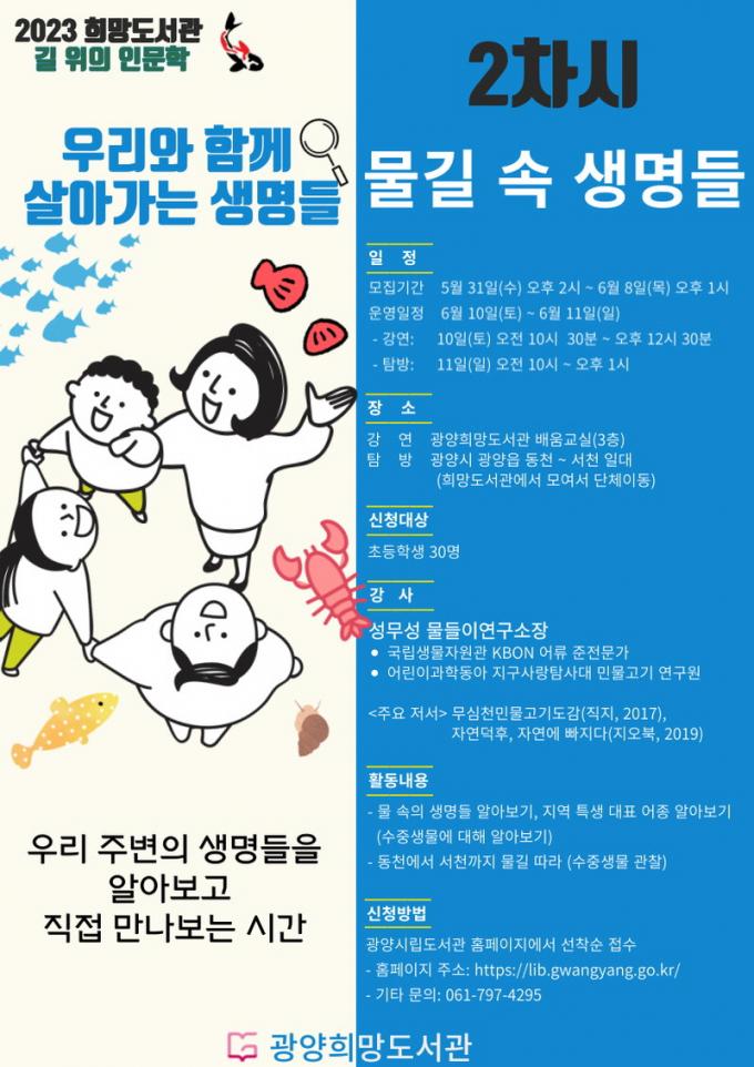 2Â÷ ÇÁ·Î±×·¥Àº ¿À´Â 10Àϰú 11ÀÏ¿¡ ¼º¹«¼º ¹°µéÀÌ¿¬±¸¼ÒÀå°ú ÇÔ²² ±¤¾çÀ¾ µ¿Ãµ°ú ¼ÃµÀ» ¹æ¹®ÇØ ±¤¾çÀÇ ´ëÇ¥ ¾îÁ¾À» ¾Ë¾Æº¸°í ¼ö»ý»ý¹°À» °üÂûÇÏ´Â ¡®¹°±æ ¼Ó »ý¸íµé¡¯ÀÌ °èȹµÅ ÀÖ´Ù.