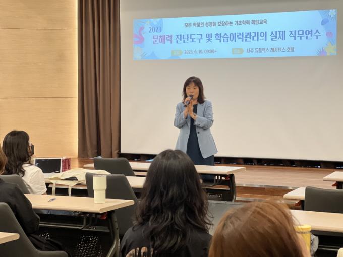 À̹ø Á÷¹«¿¬¼ö´Â ±³»çÀÇ ¹®ÇØ·Â Áø´Üµµ±¸ Ȱ¿ë ´É·Â°ú ÇнÀÀ̷°ü¸®ÀÇ È¿À²¼ºÀ» ³ô¿© ±âÃÊÇз ÁöµµÀÇ Àü¹®¼ºÀ» °ÈÇϱâ À§ÇØ ¸¶·ÃµÆ´Ù. ¿¬¼ö´Â ÇÑ±Û ¶Ç¹Ú¶Ç¹Ú, ÃÊ±â¹®ÇØ·Â°Ë»ç, REVT(Ç¥Çö ¹× ¼ö¿ë ¾îÈÖ·Â °Ë»ç), KOLRA(Çѱ¹¾î Àбâ°Ë»ç), K-TOLD(Àбâ‧¾²±â Áø´Ü°Ë»ç), NotionÀ» Ȱ¿ëÇÑ ÇнÀÀ̷°ü¸® µîÀ¸·Î ÀÌ·ïÁ³À¸¸ç, ¸ðµç °úÁ¤Àº À̷аú ½Ç½ÀÀ» º´ÇàÇß´Ù.