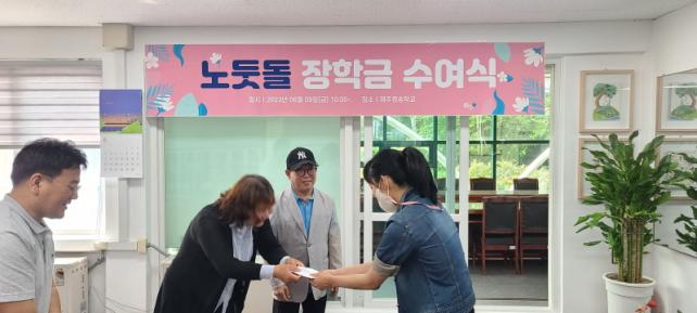 ÇÑÆí, ¾öµ¿ºó ±³ÀåÀº¡°Çظ¶´Ù Á¦ÁÖ ³ëµÔµ¹¿¡¼ Áֽô °ü½É°ú µµ¿ò¿¡ ±³Á÷¿ø°ú Çлý ¸ðµÎ °¨»çÇÑ ¸¶À½À» °¡Áö°í ÀÖÀ¸¸ç, ÀåÇбÝÀ» ¹ÞÀº Çлý°ú ÇлýÀÇ °¡Á¤¿¡ Á¦ÁÖ ³ëµÔµ¹ ´ÜüÀÇ µû¶æÇÑ ¸¶À½ÀÌ Àü´ÞµÉ ¼ö Àֱ⸦ ¹Ù¶õ´Ù¡±¶ó°í ÀüÇß´Ù.