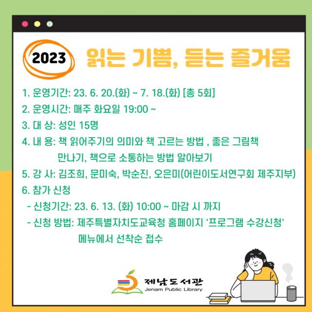 º» °Á´ 6¿ù 20ÀÏ(È)ºÎÅÍ 7¿ù 18ÀÏ(È)±îÁö ¸ÅÁÖ È¿äÀÏ 19½Ã¿¡ Á¦³²µµ¼°ü Æò»ýÇнÀ½Ç¿¡¼ ÁøÇàµÇ¸ç, ¼ö° ½ÅûÀº Á¦ÁÖÆ¯º°ÀÚÄ¡µµ±³À°Ã» °ø°øµµ¼°ü ȨÆäÀÌÁö (https://org.jje.go.kr/lib) [ÇÁ·Î±×·¥ ½Åû] ¸Þ´º¿¡¼ 6¿ù 13ÀÏ(È) 10½ÃºÎÅÍ ½Åû °¡´ÉÇÏ´Ù.