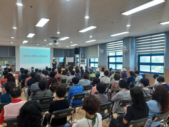 À̹ø ±³À°Àº ±¤¾ç³ëÀκ¹Áö°üÀ» ÀÌ¿ëÇÏ´Â ¾î¸£½Å 80¿© ¸íÀÌ Âü¼®ÇÑ °¡¿îµ¥ ¾î¸£½ÅµéÀÇ ¼Òºñ ÇÇÇØ ¿¹¹æ°ú ¿Ã¹Ù¸¥ ¼Òºñ Ȱµ¿À» À§ÇØ ¸¶·ÃµÆ´Ù.