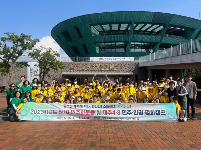 ÇÑÆí, ±¤ÁÖµ¿ºÎ±³À°Áö¿øÃ» Á¤¼º¼÷ ±³À°ÀåÀº ¡°À̹ø Ä·ÇÁ¸¦ ÅëÇØ ±¤ÁÖ¿Í Á¦ÁÖ ÇлýµéÀÌ ¹ÎÁÖ¡¤Àαǡ¤ÆòÈÀÇ ¿ª»ç¿Í °¡Ä¡¿¡ ´ëÇØ ¹è¿ì°í ±â¾ïÇÏ´Â ¼ÒÁßÇÑ ½Ã°£ÀÌ µÆ´Ù¡±¸ç ¡°±¤ÁÖÄ·ÇÁ¿¡¼µµ ±¤ÁÖ¿Í Á¦ÁÖÀÇ ¿ª»ç°¡ ¡ã¸¸³ª°í ¡ã¼ÒÅëÇÏ°í ¡ã±â¾ïµÇµµ·Ï ´Ù¾çÇÑ ÇÁ·Î±×·¥ Áغñ¿¡ Èû¾²°Ú´Ù¡±°í ¸»Çß´Ù.