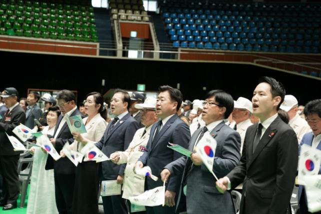 ±â³ä½Ä¿¡´Â ¿À¿µÈÆ Áö»ç, ±èÇÑ±Ô ±¹È¸ÀÇ¿ø, ¼ÛÄ¡¼± ´ëÇѹα¹6¡¤25ÂüÀüÀ¯°øÀÚȸ Á¦ÁÖµµÁöºÎÀåÀ» ºñ·ÔÇØ ±â°ü¡¤º¸ÈÆ´ÜüÀå, ±¹°¡À¯°øÀÚ, À¯Á·, µµ¹Î µî 500¿©¸íÀÌ Âü¼®Çß´Ù.