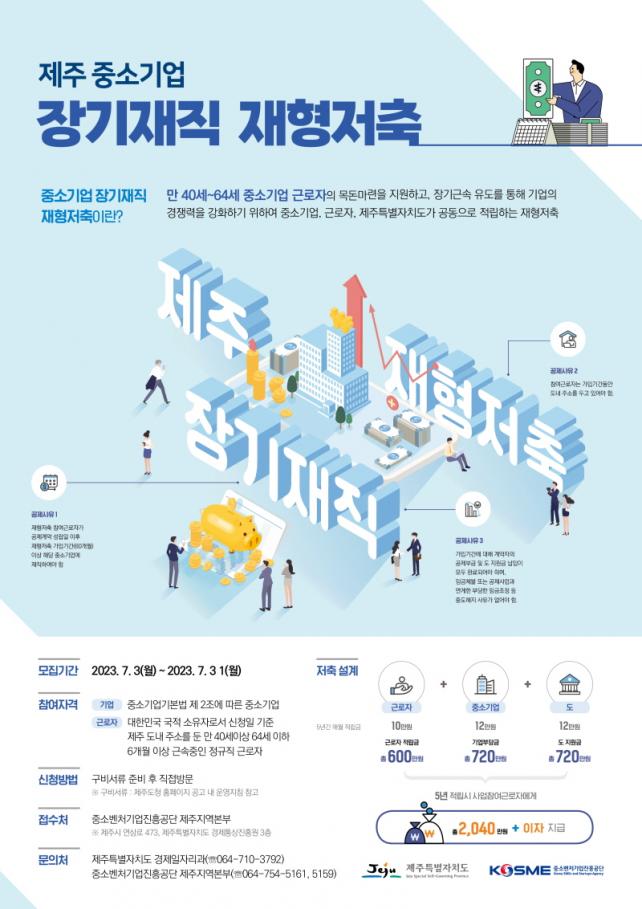 Á¦ÁÖÆ¯º°ÀÚÄ¡µµ´Â ÁßÀå³â ±Ù·ÎÀÚÀÇ Àå±âÀçÁ÷À» À¯µµÇϱâ À§ÇÑ ¡®Áß¼Ò±â¾÷ Àå±âÀçÁ÷ ÀçÇüÀúÃà»ç¾÷¡¯ Âü¿©ÀÚ¸¦ ¿À´Â 7¿ù 3ÀϺÎÅÍ 7¿ù 31ÀϱîÁö ¸ðÁýÇÑ´Ù.
