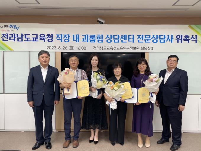 Àü¶ó³²µµ±³À°Ã»Àº 26ÀÏ(¿ù) Àü¶ó³²µµ±³À°Ã»±³À°¿¬±¸Á¤º¸¿ø¿¡¼ Á÷Àå ³» ±«·ÓÈû ¹× °©Áú ÇÇÇØÀÚ º¸È£¿Í Ä¡·á¸¦ À§ÇØ Àü¹®½É¸®»ó´ã»ç 4¸íÀ» À§ÃËÇß´Ù. À§ÃËµÈ »ó´ã»ç´Â ¼øÃµ(2°÷)°ú ¸ñÆ÷, ¹«¾È µî °¢°¢ÀÇ »ó´ã¼Ò¿¡¼ Àü³²±³À°Ã» »ó´ã¼¾ÅÍ ±â´ÉÀ» ¼öÇàÇÏ°Ô µÈ´Ù.