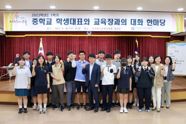 ¡®2023Çг⵵ 1Çбâ ÁßÇб³ Çлý´ëÇ¥¿Í ±³À°Àå°úÀÇ ´ëÈ ÇѸ¶´ç¡¯Àº ¹ÎÁÖÀû ÇлýÀÚÄ¡¹®È¸¦ È®»ê½Ã۰í Çлý Áß½ÉÀÇ ±³À°Á¤Ã¥ ¹ß±¼À» À§ÇØ 1ºÎ ÇÁ·Î±×·¥¡®Çб³¹®È¸¦ º¯È½Ã۱â À§ÇÑ ÇлýÀÚġȸ »ç·Ê ³ª´®°ú °ø°¨¡¯, 2ºÎ ÇÁ·Î±×·¥¡®ÇູÇÑ Çб³ ¸¸µé±â¸¦ À§ÇÑ »õ·Î¿î »ý°¢°ú ¼ÒÅ롯À¸·Î ÁøÇàÇß´Ù.