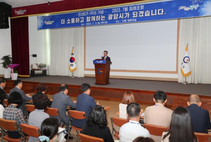 Á¤ ½ÃÀåÀº ¡°½ÃÀå°ú Á÷¿øµéÀÌ ÇѸ¶À½À¸·Î ÇÔ²² ¶Û ¶§ ½Ã¹Îµé¿¡°Ô °¨µ¿À» ÁÙ ¼ö ÀÖ´Â ÇàÁ¤À» ÆîÄ¥ ¼ö ÀÖ´Ù¡±¸ç ¡°Á÷¿øµéÀÇ ´É·ÂÀ» ÃÖ´ëÇÑ ¹ßÈÖÇÒ ¼ö ÀÖµµ·Ï ³ë·ÂÇϰڴ١°°í ¸»Çß´Ù.