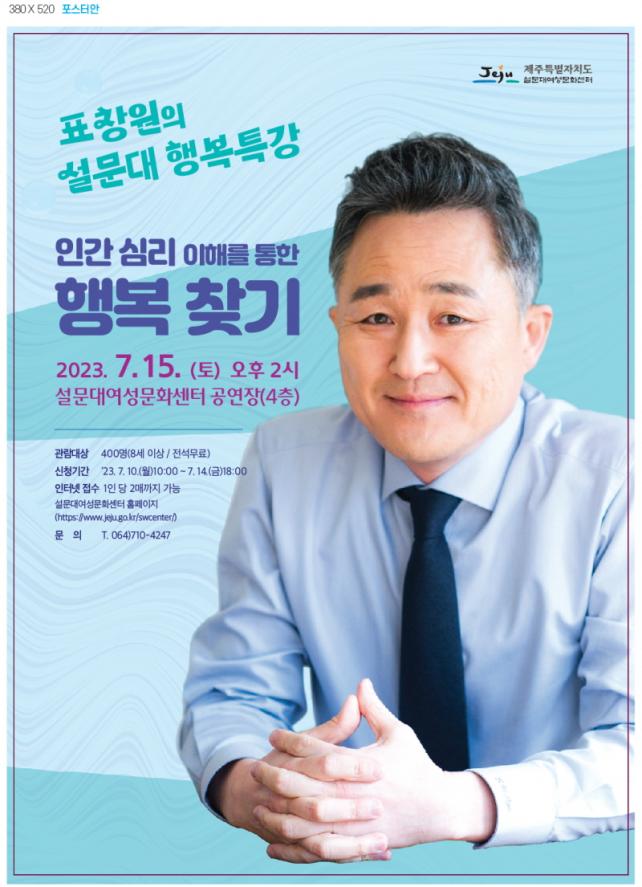 ǥâ¿ø ¼ÒÀåÀº »îÀÇ ÁúÀ» ÀúÇϽÃ۰í ÀÏ»óÀÇ Æò¿Â°ú ÇູÀ» À§ÇùÇÏ´Â ¹üÁ˽ɸ®¿¡ ´ëÇØ °ÀÇÇÒ ¿¹Á¤ÀÌ´Ù. »çÀü ¿¹¾àÀº ¿À´Â 10ÀÏ ¿ÀÀü 10½ÃºÎÅÍ 14ÀÏ ¿ÀÈÄ 6½Ã±îÁö ¼³¹®´ë¿©¼º¹®È¼¾ÅÍ ´©¸®Áý(https://www.jeju.go.kr/swcenter/)¿¡¼ ÇÒ ¼ö ÀÖÀ¸¸ç, 400¸í ¼±Âø¼ø ¸ðÁýÀÌ´Ù. ÀÔÀå·á´Â ¹«·áÀ̸ç, Ư° °ü·Ã ÀÚ¼¼ÇÑ »çÇ×Àº ¼³¹®´ë¿©¼º¹®È¼¾ÅÍ(064-710-4247)·Î ¿¬¶ôÇÏ¸é µÈ´Ù.
