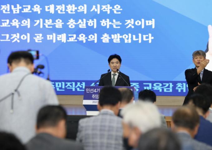 Àü¶ó³²µµ±³À°Ã»Àº 7¿ù 4ÀÏ(È) û»ç ´ëȸÀǽǿ¡¼ ÁÖ¹ÎÁ÷¼± 4±â Ãâ¹ü°ú ±è´ëÁß ±³À°°¨ ÃëÀÓ 1Áֳ⠱âÀÚȸ°ßÀ» °®°í ¡°Àü³²±³À°ÀÌ ¿ì¸® Áö¿ªÀÇ ¹Ì·¡¡¯¸¦ ¸¸µå´Â µ¥ ÁßÃßÀû ¿ªÇÒÀ» ÇϰڴÙ.¡±¸ç À̰°ÀÌ Ãµ¸íÇß´Ù.