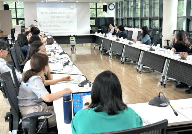 ¿ÃÇØ ½Å±Ô»ç¾÷À¸·Î ÃßÁøÇϰí ÀÖ´Â 2023 Á¦ÁÖÇü ÀÚÀ²Çб³ ±³À°°úÁ¤ Áö¿ø´ÜÀº ±³À°°úÁ¤ ¿î¿µ¿¡ Àü¹®¼ºÀ» Áö´Ñ ±³¿ø ¹× ±³À°Àü¹®Á÷¿ø 39¸íÀ¸·Î ±¸¼ºÇÏ¿´´Ù.