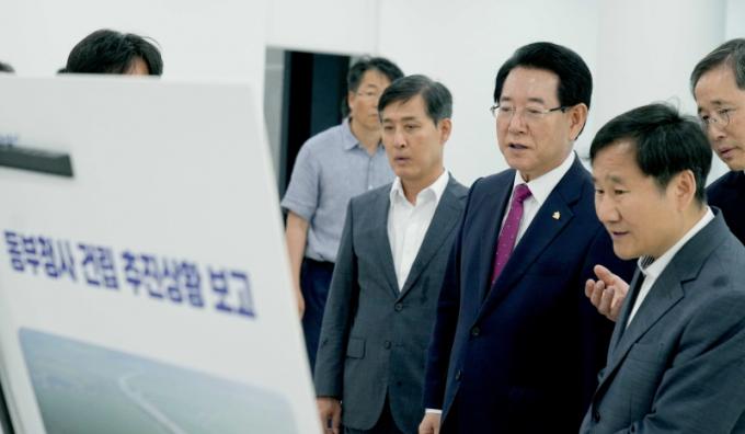 ±è¿µ·Ï Áö»ç´Â ÇöÀå¿¡¼ µ¿ºÎÁö¿ªº»ºÎÀåÀ¸·ÎºÎÅÍ ÃßÁø»óȲ°ú ÇâÈÄ °øÁ¤ µîÀ» º¸°í¹Þ°í ½Åû»ç ÁذøÀ» À§ÇØ ¾Ö¾´ ½Ã°ø»ç, °¨¸®´Ü µî ÇöÀå °ü°èÀÚ ³ë°í¸¦ °Ý·ÁÇß´Ù. ÀÌ¾î ¡°7¿ù Áß ¸ðµç ºÎ¼°¡ ÀÔÁÖÇØ ¾÷¹«¸¦ ½ÃÀÛÇϵµ·ÏÃÖ¼±À» ´ÙÇØ´Þ¶ó¡±°í ´çºÎÇß´Ù. ƯÈ÷ ¡°µ¿ºÎû»ç´Â ÀÌ ÀÏ´ë µµ¹ÎÀÇ ÇàÁ¤ ºÒÆíÀ» ÃÖ¼ÒÈÇÏ°í »ê¾÷°ú ¹®È, °ü±¤ µîÀÌ ¾î¿ì·¯Á® Àü³² µ¿ºÎ±ÇÀÌ »õ·Ó°Ô ¹ßÀüÇÏ´Â Ãʼ®ÀÌ µÉ °Í¡±À̶ó°í °Á¶Çß´Ù.