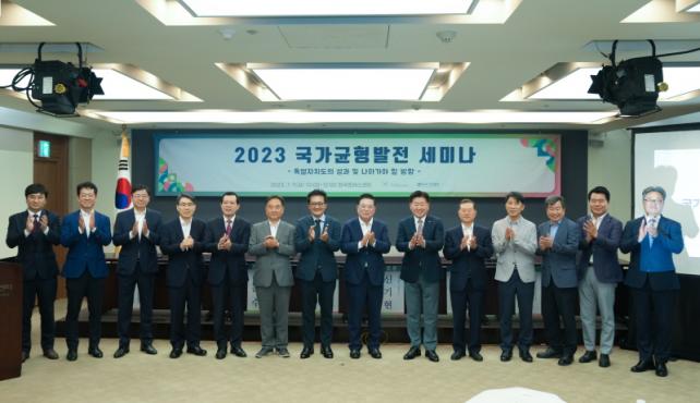 ¡®Æ¯º°ÀÚÄ¡µµÀÇ ¼º°ú ¹× ³ª¾Æ°¡¾ß ÇÒ ¹æÇ⡯À̶ó´Â ÁÖÁ¦·Î ¿¸° À̳¯ Çà»ç¿¡´Â ¿À¿µÈÆ Áö»ç, ¿ìµ¿±â ±¹°¡±ÕÇü¹ßÀüÀ§¿øÀå, ±èµ¿ÈÆ Çѱ¹±âÀÚÇùȸÀå, ¼ÛÀçÈ£ ±¹È¸ÀÇ¿øÀ» ºñ·ÔÇØ ±ÕÇü¹ßÀü °ü·Ã Àü¹®°¡ µî 30¿©¸íÀÌ Âü¼®Çß´Ù.