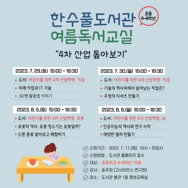 À̹ø ÇÁ·Î±×·¥Àº ¼ÛÁÖÈñ °»çÀÇ Áöµµ·Î 2023³â 7¿ù 29ÀϺÎÅÍ 8¿ù 6ÀϱîÁö ¸ÅÁÖ Åä¿äÀÏ¡¤ÀÏ¿äÀÏ¿¡ ÁøÇàµÇ¸ç, Ãʵî ÀúÇгâ°ú °íÇг⠹ÝÀ» ³ª´©¾î °¢°¢ 4ȸÂ÷¾¿ ¿î¿µµÈ´Ù.